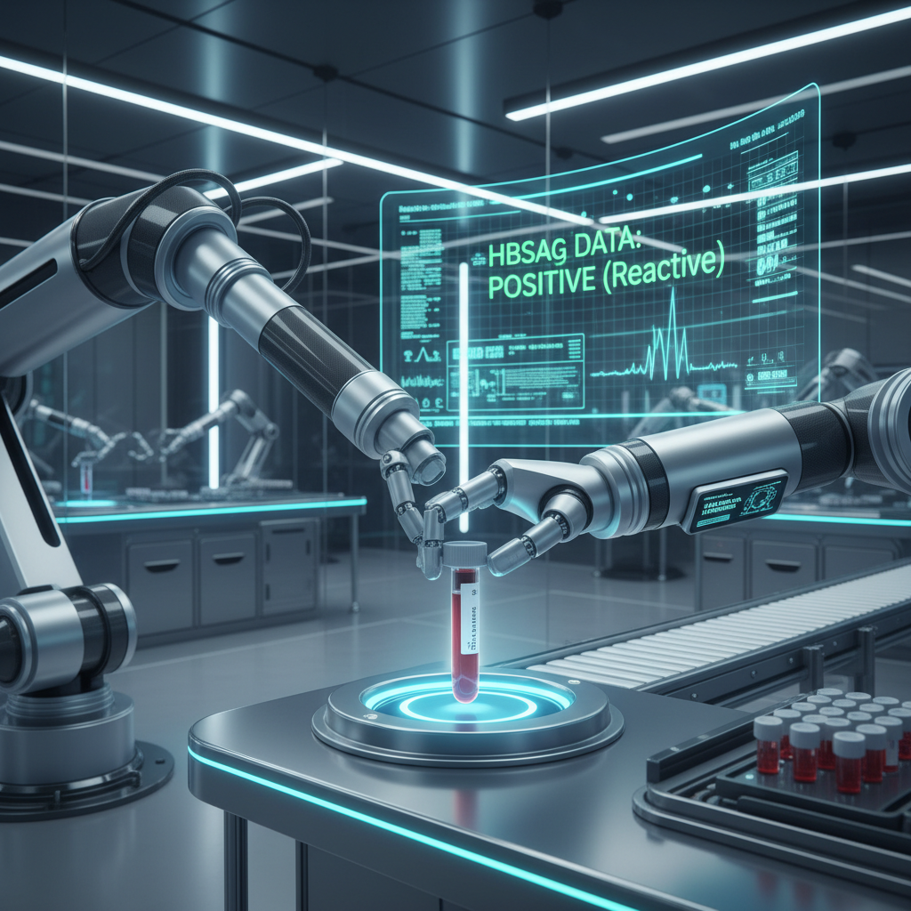 - Wykonanie testu immunochemicznego: Laborant uruchamia automatyczny proces wykrywania białka HBsAg.