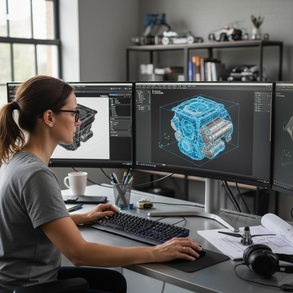 - Tworzenie cyfrowego modelu CAD – projektant buduje geometrię zgodnie z wymaganiami produkcyjnymi.