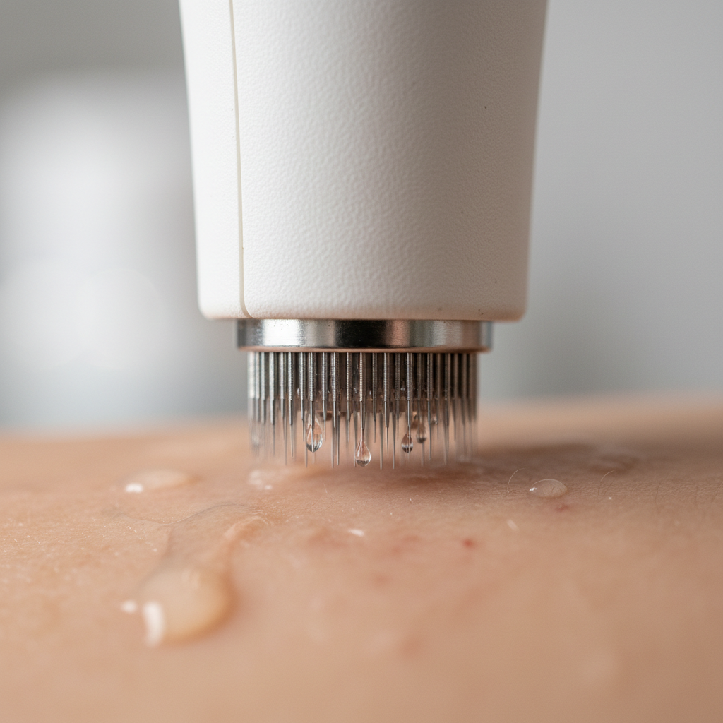 - Mikronakłuwanie: Technika mechanicznego drażnienia skóry za pomocą mikroigieł w celu pobudzenia regeneracji.