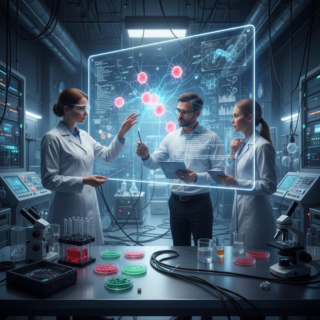 Zespół badawczy analizujący dane komórek macierzystych przy wsparciu AI – przyszłość nauki dzieje się dziś.