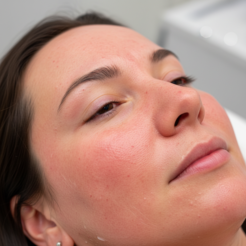 - Złuszczanie naskórka: Widoczne po kilku dniach – stan skóry przypomina „poparzenie słoneczne”.