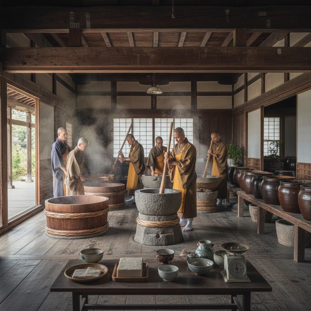 Miso nie jest przypadkowym wynalazkiem azjatyckiej popkultury. Jego korzenie tkwią głęboko w duchowości i tradycji japońskich klasztorów, gdzie od wieków fermentacja była rzemiosłem i rytuałem. Mnisi traktowali miso jako źródło energii, pokarm dla ciała i duszy — codzienny element zupy miso, nieodłączny rytuał pośród ciszy świątyń. Przez stulecia pasta miso rozprzestrzeniła się poza mury klasztorne, aż wreszcie trafiła do każdej japońskiej kuchni i zaczęła podbijać świat.