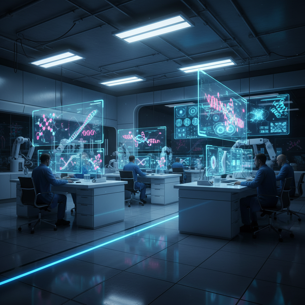 Laboratorium diagnostyczne pokazujące nowoczesne obrazy molekularne na ekranach