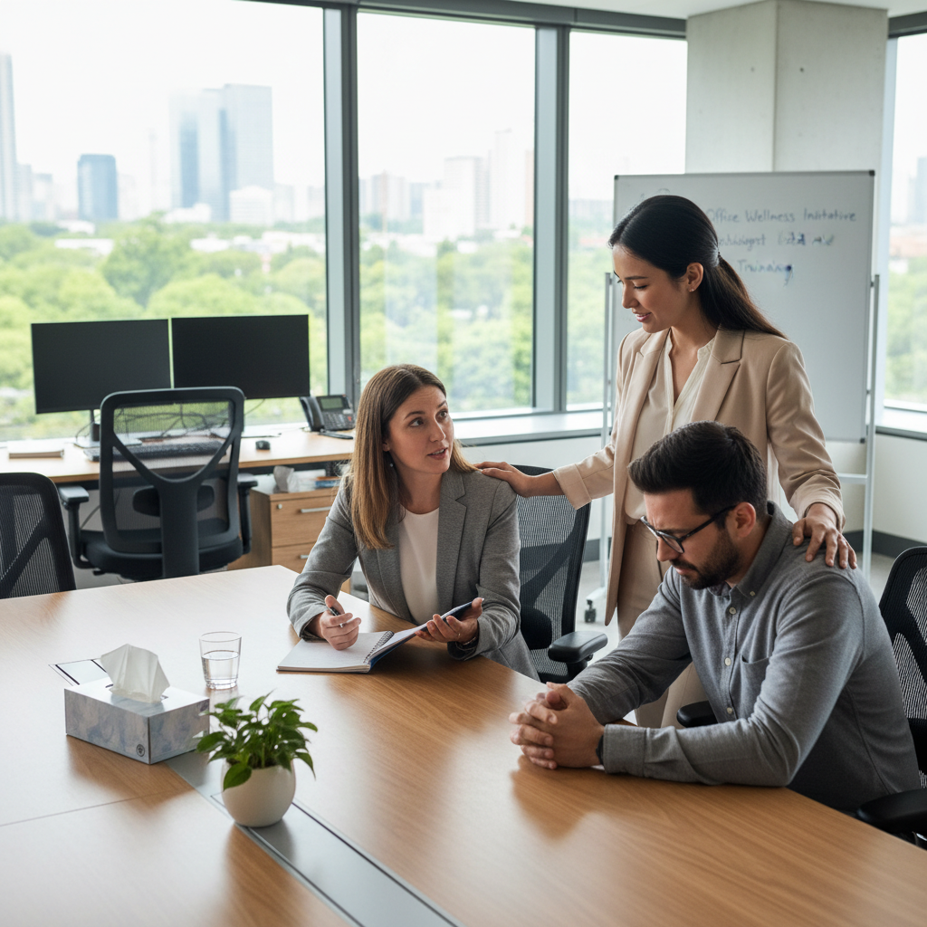 | Pracownik w biurze | Nagły wybuch płaczu, wycofanie | Plotkowanie, brak reakcji, „zajmij się pracą” |