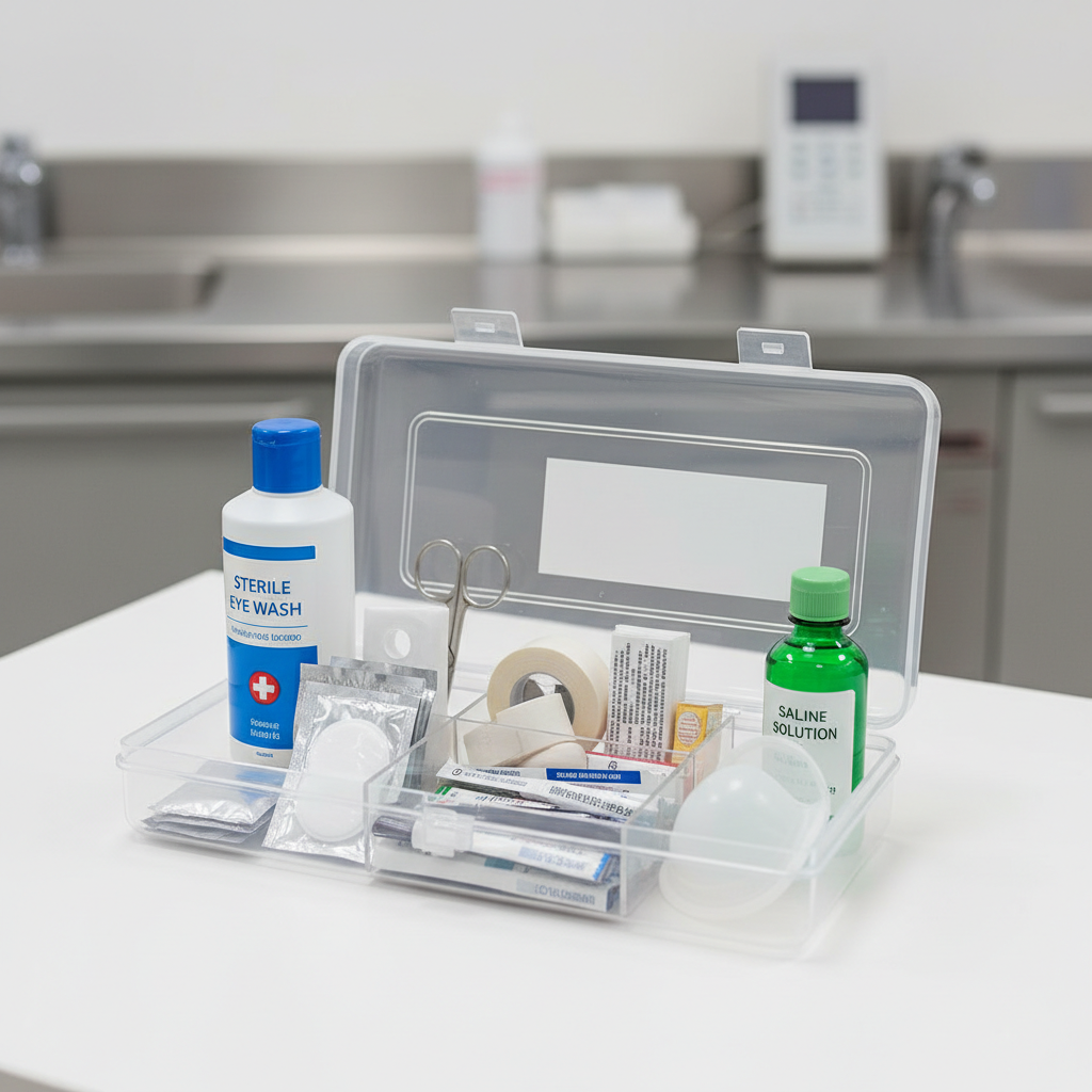 - Powszechna dostępność zestawów do płukania oka w apteczkach.