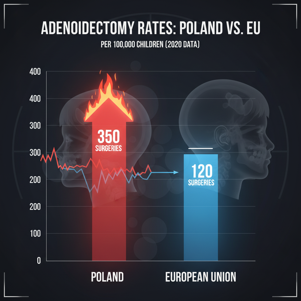 W ciągu ostatniej dekady liczba zabiegów usuwania migdałka gardłowego w Polsce urosła do rozmiarów, które trudno zignorować. Według danych Narodowego Funduszu Zdrowia, w latach 2013–2023 wykonano ponad 150 tysięcy adenotomii, a liczba ta plasuje Polskę w europejskiej czołówce, jeśli chodzi o częstotliwość zabiegów u dzieci. Dla porównania, wiele krajów Europy Zachodniej, jak Niemcy czy Francja, notuje znacznie niższe wskaźniki, mimo podobnej struktury populacji dziecięcej.