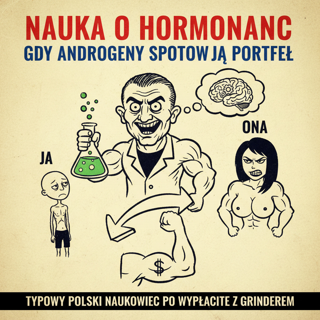 Alt: Satyryczna fotografia inspirowana polskimi memami, mieszająca humor z tematyką hormonów i SHBG