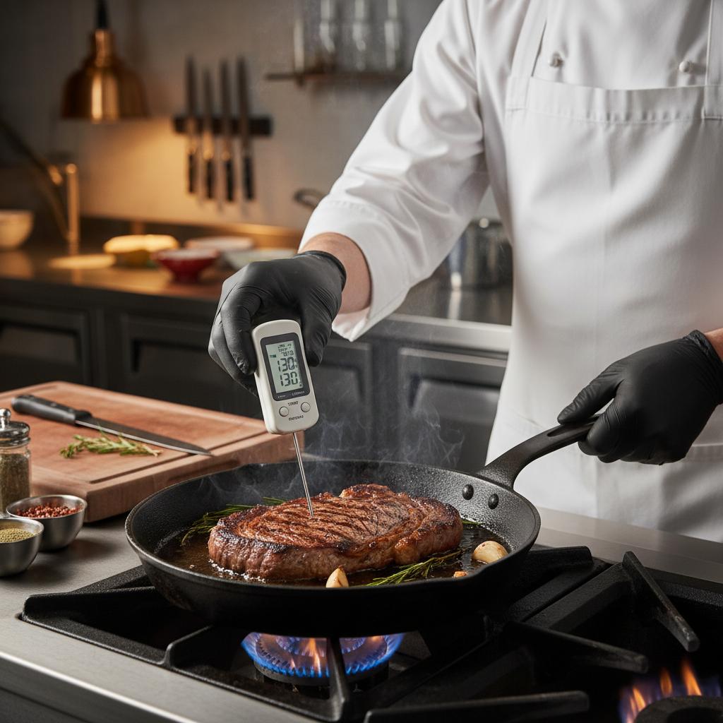 - Kuchnia – Termometry do mięsa z sondą pozwalają precyzyjnie ocenić gotowość potraw, eliminując ryzyko surowizny lub przesuszenia.